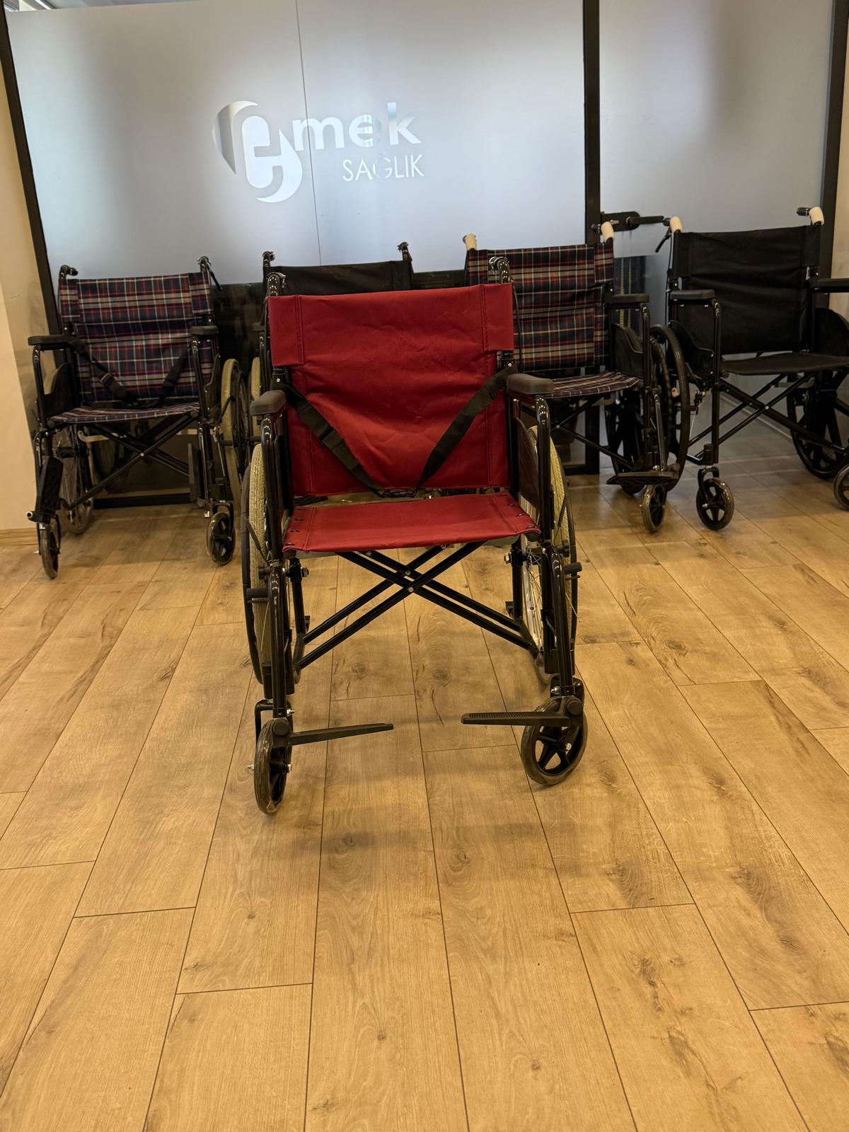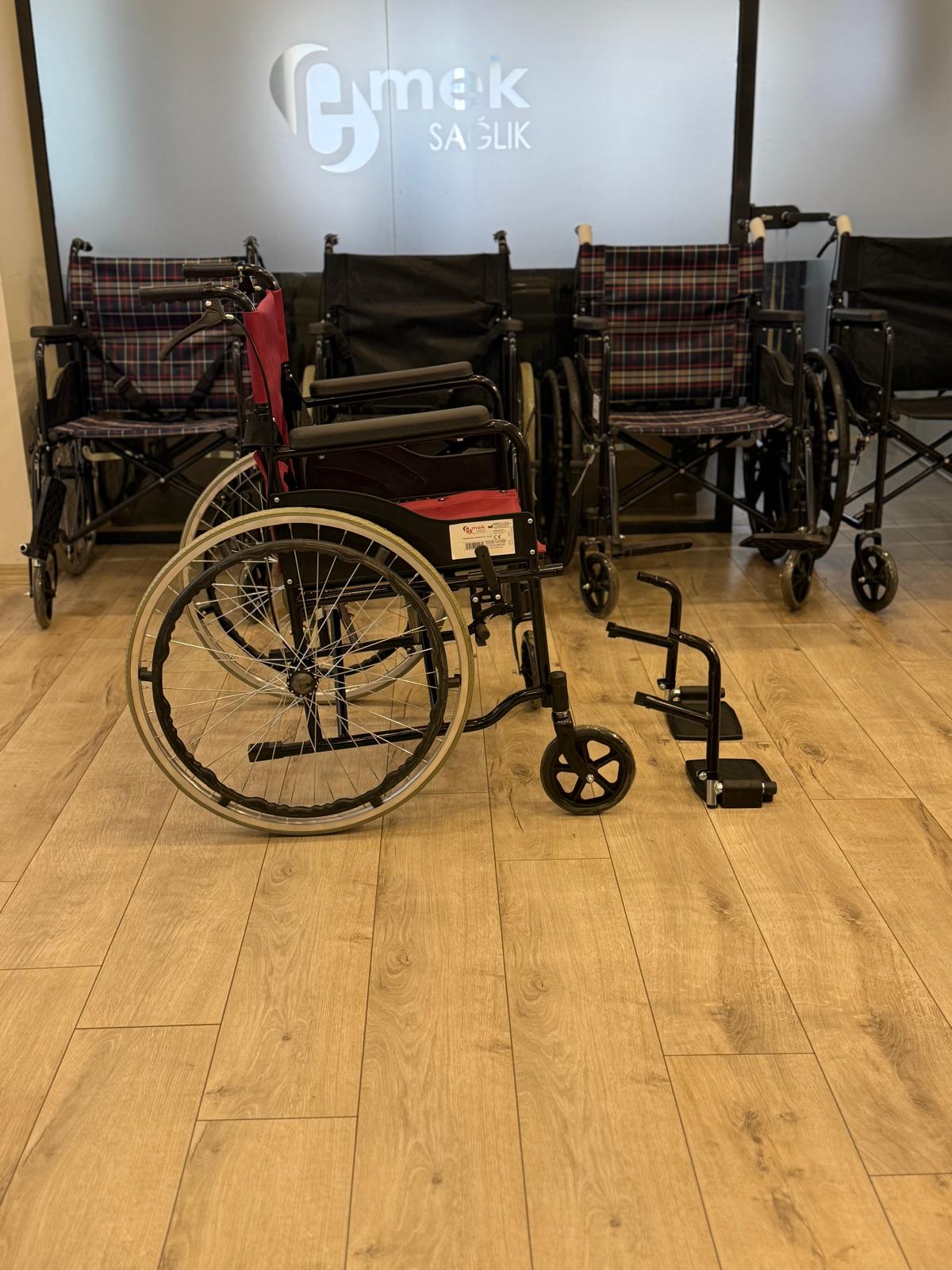 W 206 Refakatçi Frenli Katlanabilir Tekerlekli Sandalye Kırmızı Renkli